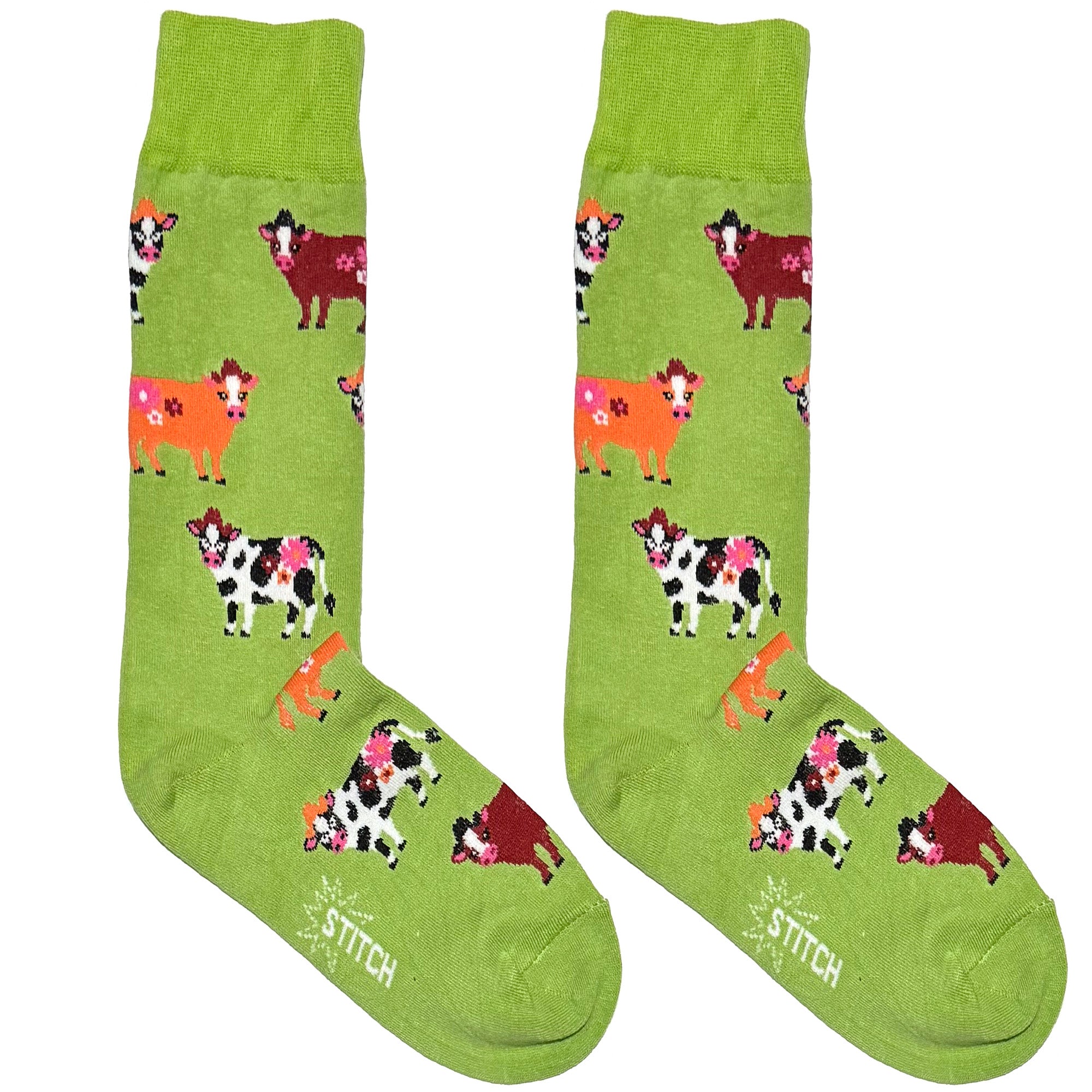 Green And Brown Cow Short Crew Socks